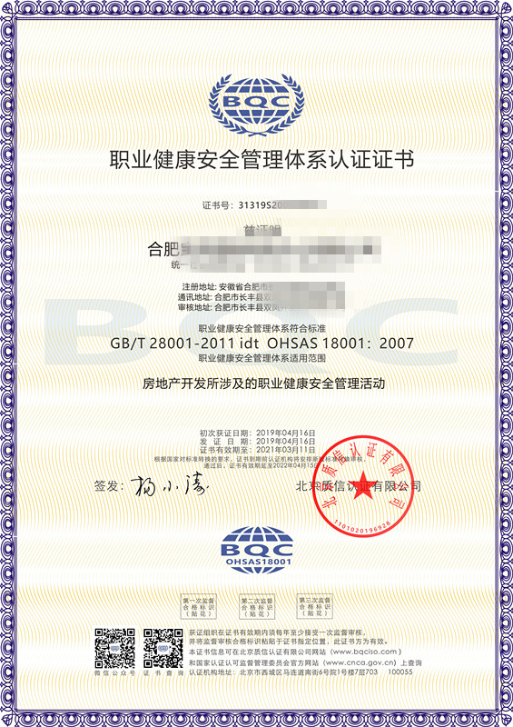 北京質(zhì)信認證有限公司安徽分公司